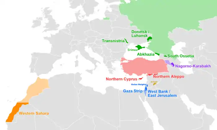 | Північний Кіпр[14] | 1974 | Окупація військовими підпорядкованими іноземній владі[15][lower-alpha 5] | ||||