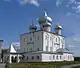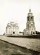 | Собор Бориса й Гліба (Чернігів) | Чернігів | 1115—1123[46] | Шестистовпний триабсидний однобанний храм. Дещо пізніше побудови був оточений галереями (втрачені). У XVII ст. перебудовувався у костьол. Наприкінці XVII ст. перебудований в стилі українського бароко. В 1857 р. збудована нова вівтарна частина. Склепіння і вівтарні абсиди первісного храму не збереглись. Первісний вигляд відтворено в 1950-ті рр. у процесі глибокої реконструкції (М. В. Холостенко)[47]. В процесі дослідження собору була виявлена будівля-попередник (маленька церква або палацева споруда). | ![]() |