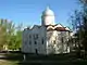 | П'ятницька церква | Чернігів | Перші роки XIII століття[48] | Чотирьохстовпний триабсидний храм зі ступінчатою композицією верхніх частин. Перебудована в стилі українського бароко наприкінці XVII ст. Зруйнована німцями у 1943 р. Відбудована П. Д. Барановським у первісних формах в 1959 р. Від древнього храму в новобудові вціліли стіни (краще збереглись північна і вівтарна) і частина склепіннь. | ![]() |