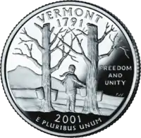 | ![]() ![]() ![]() ![]() «Свобода та єдність» — девіз Вермонта на двадцатип'ятицентівці штату ![]() ![]() «Перехрестя Америки» — девіз Індіани на двадцатип'ятицентівці штату ![]() |
