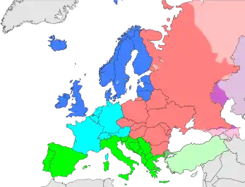 Список складений за класифікацією ООН, що передбачає поділ Європи на чотири макрорегіони: Західна, Східна, Північна та Південна Європа[1].