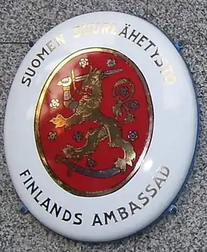 Табличка, яку вішають на будівлі фінських посольств.