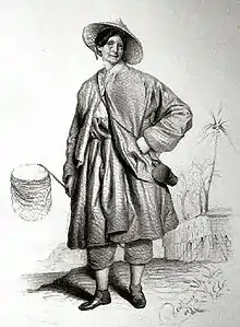 Іда Пфайффер в одязі для експедиції з сачком для комах та контейнером для зразків