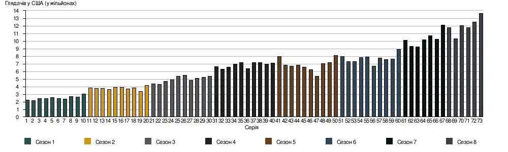 Восьмий сезон Game of Thrones: Season Eight Ratings. TV Series Finale. 16 квітня 2019. Процитовано 16 квітня 2019.