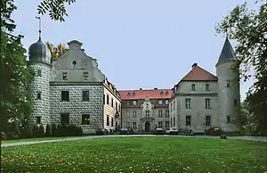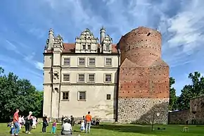 ![]() | Schloss Krangen | Zamek w Krągu[25] | 1495 • 1580-і | Krangen • Krąg (Ґміна Полянув) | Feliks von Podewils | згорів 1945, частково використовувався, відбудований після 1990 |
