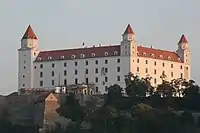 ![]() | Братиславський Град | Bratislavský hrad | ІХ ст., вперше згадується у Зальцбурзьких анналах під 907 р. | Братислава | Реконструйований у 1953–1968 рр. за проектами А.Піффла та Д.Мартинчека після пожежі 1811 р. | Національний символ країни. |