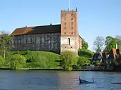 | Нюборг (дан. Nyborg Slot) | Фортеця Нюборг на острові Фюн була заснована у XII ст. для оборони протоки. Відома як місце проголошення першої данської конституції (1282) і засідань першого данського парламенту (1284—1413).[32] Протягом століть фортецю розширювали і укріплювали, навколо неї виросло місто Нюборг. У XVI ст. фортеця була модернізована в стилі доби Відродження. Під час дансько-шведської війни 1658-1659 рр. була сильно пошкоджена, тому занепала і перетворилась на руїни. Відновлювати фортецю почали на початку XX ст., тепер тут діє музей. Від первісних будівель залишились вежа і перший поверх замкового будинку.[33] | ![]() |