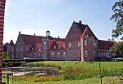 | Люккесхольм (дан. Lykkesholm Slot) | Маєток Люккесхольм розташований в південно-східній частині острова Фюн. Спочатку він був відомий як замок Магелунд і стояв на величезних залишках замку, що датуються близько 1300 року. У пізньому середньовіччі замок укріпили і оточили валами. У XVII ст. він був перенесений на теперішнє місце до берегів озера і отримав назву Люккесхольм. Влітку в маєтку часто гостював данський казкар Ганс Крістіан Андерсен; вважається, що саме тут він написав свою відому казку «Русалонька».[29][30] | ![]() |