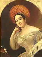 ![]() | Портрет Фанні Персіані-Такінарді в ролі Аміни в опері Белліні «Сомнамбула» | 1834 | Полотно, олія | 113 х 87 | Державний Російський музей |