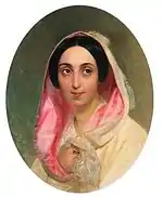 ![]() | Портрет баронеси І. І. Клодт, дружини скульптора | Близько 1839 | Полотно, олія | 44 x 36 | Ульяновський обласний художній музей |