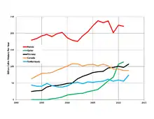| Місце | Країна/Регіон | Природний газ - експорт (куб. м) | Дата оновлення інформації |