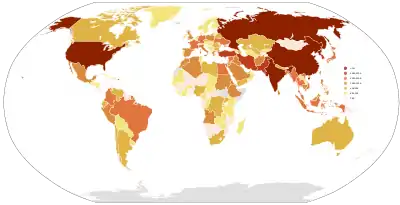 | Індія[55] | 1 444 500 | 1 155 000 | 2 526 950 | 5 126 450 | 4 | 1,1 | |