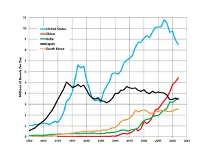 - China becomes world’s largest oil importer. www.ecns.cn (амер.). Процитовано 7 лютого 2018.