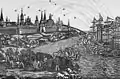 Кримська війна: англійські кораблі нападають на Соловецький монастир. Лубок.