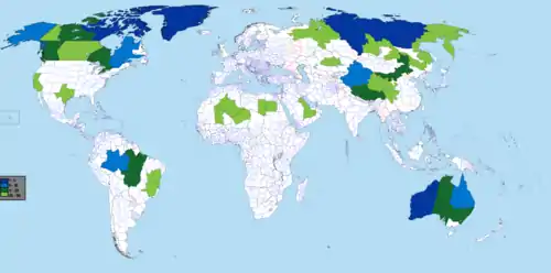 Найбільшим у світі адміністративно-територіальним утворенням є Республіка Саха в Росії, площа якої становить понад 3,1 млн км², що становить 17 % від площі країни, і близько 2,3 % від загальної площі суші. Розміри Якутії порівняні з розмірами Індії, площею 3280000 км² (7-е місце в світі за площею).
