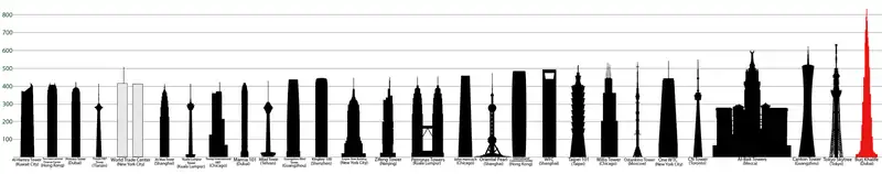 На сьогодні найвищим будинком світу є Бурдж Халіфа в Дубаях, його висота становить 828 метрів[1][2].