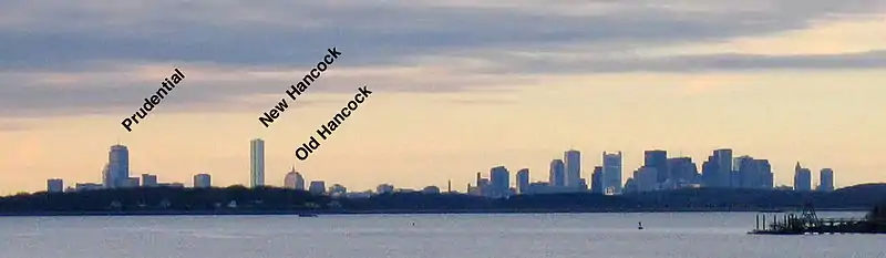 241 | 60 | 1976 | 42°20′57″ пн. ш. 71°04′29″ зх. д. | 162-й за висотою в світі, 50-й за висотою в США; найвища будівля в Бостоні та Новій Англії з 1976 року. Найвища споруда в Бостоні, побудована у 1970-х[3][4]. |