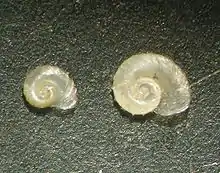 - (menetovník rozšířený) Menetus dilatatus (Gould, 1841) — некорінний, Богемія[1]