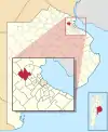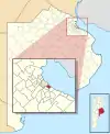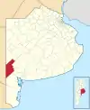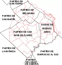 Округи провінції Буенос-Айрес, які були включені у склад однойменного міста 1887 року. Червоним показано сучасні межі столиці і її районів.