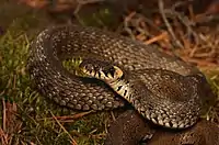Natricidae | LC | - | Поширений на території всієї країни. Полюбляє вологі місцини: береги озер, ставків, річок зі слабкою течією, болота, галявини широколистяних та хвойних лісів, оболоні. | ![]() |