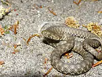 Viperidae | LC | - | Поширена в Поліссі, лісостепу, Карпатах та деяких східних регіонах. Відсутня на Закарпатській низовині. Мешкає в широколистяних, хвойних та мішаних лісах, поблизу галявин, боліт, на берегах водойм, на зарослих згарищах. | ![]() |