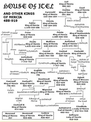 Ранні правителі Мерсії були нащадками королів Англів.