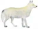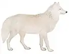 Pocock, 1935[25] | Вовк середнього розміру, забарвлення хутра майже повністю біле.[26] | Аляска, Мелвіл, Елсмір | |