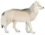 Miller, 1912 | Великий вовк білого забарвлення[49] | Тундра арктичного узбережжя Аляски від мисуБарроу на схід і, ймовірно, на північ до Арктичного архіпелагу[50] |