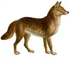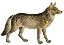 Sykes, 1831 | Дрібний вовк з короткою шерстю[23] Забарвлення хутра коливається від сірувато-червоного до червонувато-білого з чорними кінчиками. Темна V-подібна смуга на спині більш виражена, ніж у північних вовків. Черево біле.[24] | Індія, Пакистан, Іран, Туреччина, Саудівська Аравія та південний Ізраїль |
