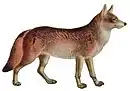 Goldman, 1937[31] | Підвид середнього розміру, стрункий; хутро містить суміш різних кольорів, включаючи чорний, білий, сірий та коричневий.[31] | Басейн річки Міссісіпі, вимер 1980 року | Можливо, підвид Canis rufus[48] but debated | |