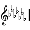 Подвійний Бемоль Понижає висоту звучання ноти на два хроматичні півтони. Як правило використовується, якщо висота ноти вже була змінена бемолем у ключових знаках.[6] |