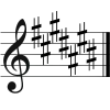 Ключові знаки Дієз підвищує висоту звучання нот на півтону що знаходитимуться на відповідній лінії нотного стану або на проміжку між лініями, і таким чином для всієї октави, що дозволяє визначити основну мінорну чи мажорну тональність. Різні тональності визначаються кількістю дієзів у ключових знаках, послідовність яких задана в порядку зліва на право; наприклад, якщо тільки чотири перші дієзи було використано в ключових знаках, тональність буде Мі мажор/До♯ мінор, а відповідні ноти будуть підняті. |