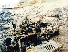 24 березня 2003 року розвідувальні групи «Дельти» перетнули іракський кордон на імпровізованих ATVs, забезпечуючи наведення союзної авіації на цілі. Результати цілевказань призвели до втрати іракською армією колосальної кількості бронетехніки та систем ППО. Проведення фахівцями «Дельти» військової розвідки дамби Гадіта довело, що попередні розрахунки були помилковими та для захоплення цього важливого комунікаційного вузла в системі оборони противника потрібно більше сил та засобів. З метою виконання цього завдання, до першого ескадрону з Форту Брегг прибув ще один ескадрон «Дельти», посилений батальйоном рейнджерів та танковою ротою M1A1 Abrams 70-го бронетанкового полку армії США. Перекидання танкового компоненту здійснювалося літаками C-17 з Таліла до авіабази H-1 і далі до району зосередження угруповання, що формувалося. Район під кодовою назвою «Грізлі», який розташовувався в пустелі між Гадіта та Тікритом, був створений «Дельтою».
