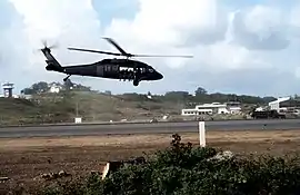 25 жовтня 1983 року близько 06:30 ранку 7 вертольотів «Блек Хок» 160-ї оперативної групи (майбутній 160-й полк армійської авіації ССО) з операторами ескадрону «B» «Дельти» влетіли в долину та зависли в повітрі. З бокових дверей гелікоптерів на землю посипалися на «фаст-ропах» спецназівці. Зненацька по американських вертольотах відкрили вогонь вогневі засоби гренадців, що охороняли в'язницю, та з тилу вдарили кулемети «Форту Фредерік». До спогадами місцевих жителів деякі «Блек Хоки», намагаючись сховатися від перехресного вогню гарнізону, вилетіли з долини. Офіційні джерела стверджують, що якнайменше один пілот вертольоту вилетів на базу без наказу та відмовився повернутися на поле бою.