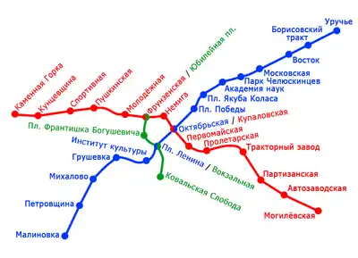 Схема станцій Мінського метрополітену.