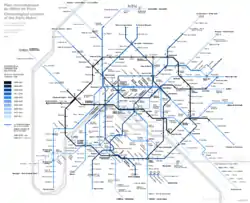 Станом на 2012 рік метрополітен французької столиці складається з 16 ліній загальною довжиною 215 км, дві з яких (3bis і 7bis) не з'єднані з основною мережею, оскільки вони є колишніми відтинками ліній 3 та 7 відповідно. 10 ліній виходять за адміністративні межі Парижа, поєднуючи міста-сателіти зі столицею.