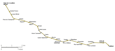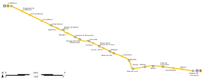 Лінія 1 Паризького метро складається з 25 станцій, у тому числі з 13 пересадочних.