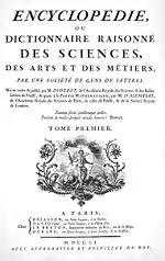 - Encyclopédie ou Dictionnaire raisonné des sciences, des arts et des métiers. (la dir. de Denis Diderot et Jean-Baptiste d'Alembert) Paris 1751—1780.- Vols. 1-35.[32]