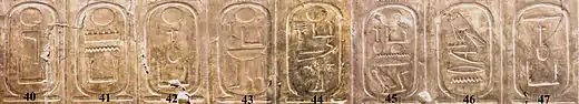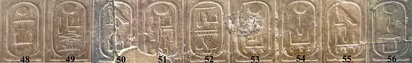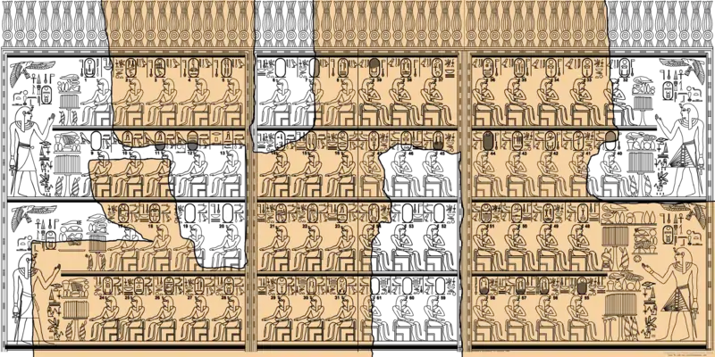 «Абідоський список — 1», храм Рамзеса II (Абідос), близько XIII ст. до н. е. (Лондон, Британський музей). |