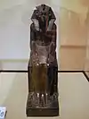 | Сфінкс із іменем Неферіта I. Лувр. | Фрагмент рельєфу з іменем фараона Псаммута. Метрополітен-музей. Нью-Йорк | Царський сфінкс із іменем фараона Ахоріса. Базальт. Знайдений у Римі. Лувр. |