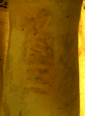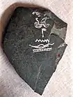 | Нармер побиває правителя ворогів (палета Нармера, алеврит, Каїрський музей). | Частина посудини з Абідоса з іменем Аги (фаянс, Британський музей). |