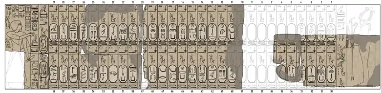 ![]() «Саккарський список — 2», гробниця будівничого Тунарі, близько XIII ст. до н. е. (Каїр, Каїрський єгипетський музей). |