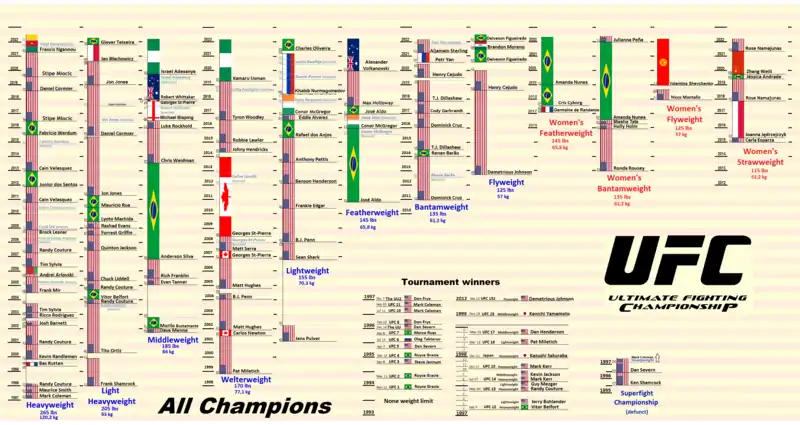 Нижче наведено список чемпіонів UFC у всіх вагових категоріях у порядку здобуття титулу, а також список чемпіонів турнірів UFC у порядку здобуття титулу.