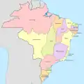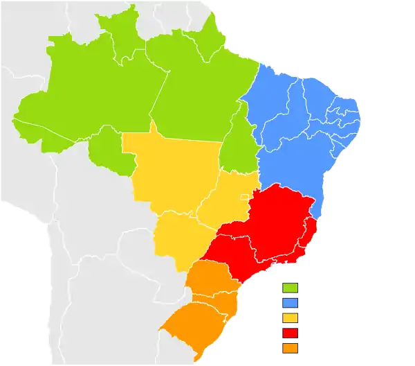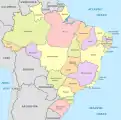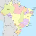 Бразилія — федерація, що складається з 26 штатів (порт. estados) та 1 федерального округу (distrito federal), всього 27 «федеративних одиниць», розбитих на 5 регіонів для статистичних цілей.