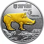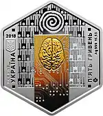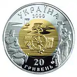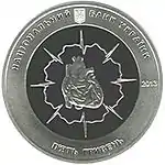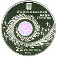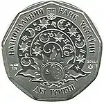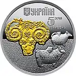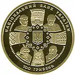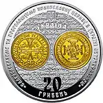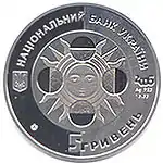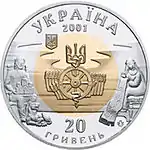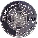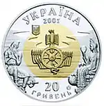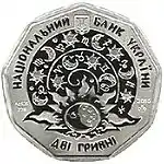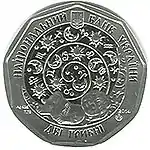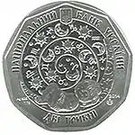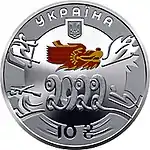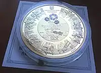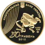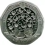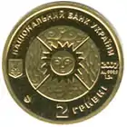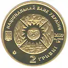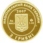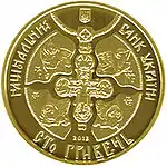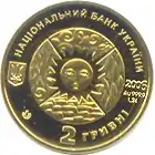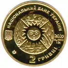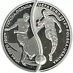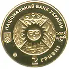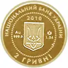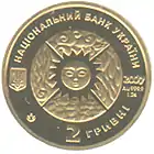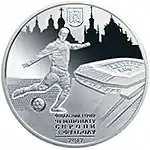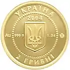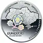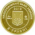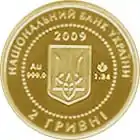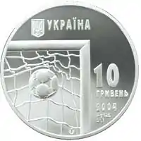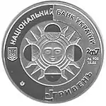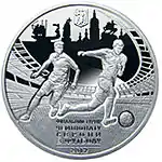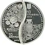 Найкоштовніша українська монета. Присвячена Євро-2012. Номінал — 500 грн, вага — 0,5 кг золота 999 проби, вартість — близько 1 000 000 грн | ||