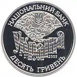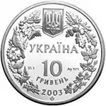 | 45 | 10-річчя Національного банку України | 10 | 3 000 | 31,1 | 29.03.01 | ![]() |
