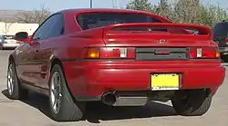 - Задній спойлер, розташований на кришці багажника, збільшує тиск повітря над кришкою багажника і заднім склом. Без спойлера у цьому місці утворюється розрідження повітря, яке зменшує притискну силу (понижений тиск намагається підняти автомобіль) та збільшує опір (понижений тиск створює силу, спрямовану назад, проти руху). Задній спойлер підвищує тиск повітря над задньою частиною автомобіля і тим самим покращує притискну силу (до 15 % при вимірюваннях на Фольксвагені Сірокко) й збільшує опір (до 5 %). Крім того, спостерігається несподіване[6] зниження тиску повітря під автомобілем, що також збільшує притискну силу. Ефект збільшення опору зникає зі збільшенням висоти розташування спойлера[6], такі спойлери інколи застосовуються для збільшення притискної сили на спортивних автомобілях.