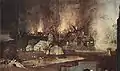 До двозначної печері прямує група бісів, це явно є пародією на релігійний хід. На чолі її біс у митрі та мантії священика, поруч з ним — олень в червоному плащі. Традиційно олень в християнстві є символом вірності душі, тут же його зображення — навмисне блюзнірство.