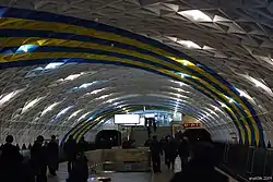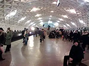 Найбільш примітною особливістю станції є склепіння, внутрішня поверхня якого вперше в практиці українського метробудування виконана з бетонних об'ємних елементів. Трикутні піраміди цих елементів утворюють на поверхні склепіння систему поперечних і діагональних швів. Поперечні шви підкреслюють геометрію склепіння і підкреслюють конструктивну основу станції. Діагональні шви ще більш розширюють простір залу. Кожен з 6200 залізобетонних блоків важить 100 кг.