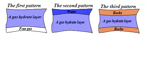 У переважній більшості випадків газогідратні поклади не мають у підошві пласта вільного газу (див. рис. 1, другий і третій типи). Для морської розробки пласта газогідрату, розташованого в товщі гірських порід, основним принципом видобутку є підведення теплоносія або хімічного реагенту до продуктивної зони газогідратного покладу, що викликає його дисоціацію за рахунок хімічних реакцій (приміром, заміщення метану вуглекислим газом) або порушення фазової рівноваги в бік розкладання газогідрату на газ і воду при підвищенні температури. Розробку здійснюють бурінням з морських платформ чи суден у газогідратний пласт вертикальних свердловин з наступним нагнітанням теплоносія чи реагенту. Метан, вивільнений в локальній зоні потрапляння теплоносія, разом з водою по трубах відкачують на морську платформу (судно), де газ відділяють і накопичують.
